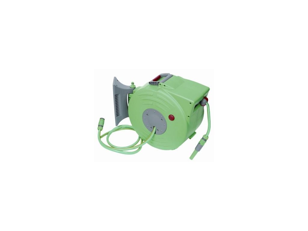 Otočný naviják zahradní hadice včetně 20 metrů hadice 1/2", rychlospojek a postřikovací koncovky.