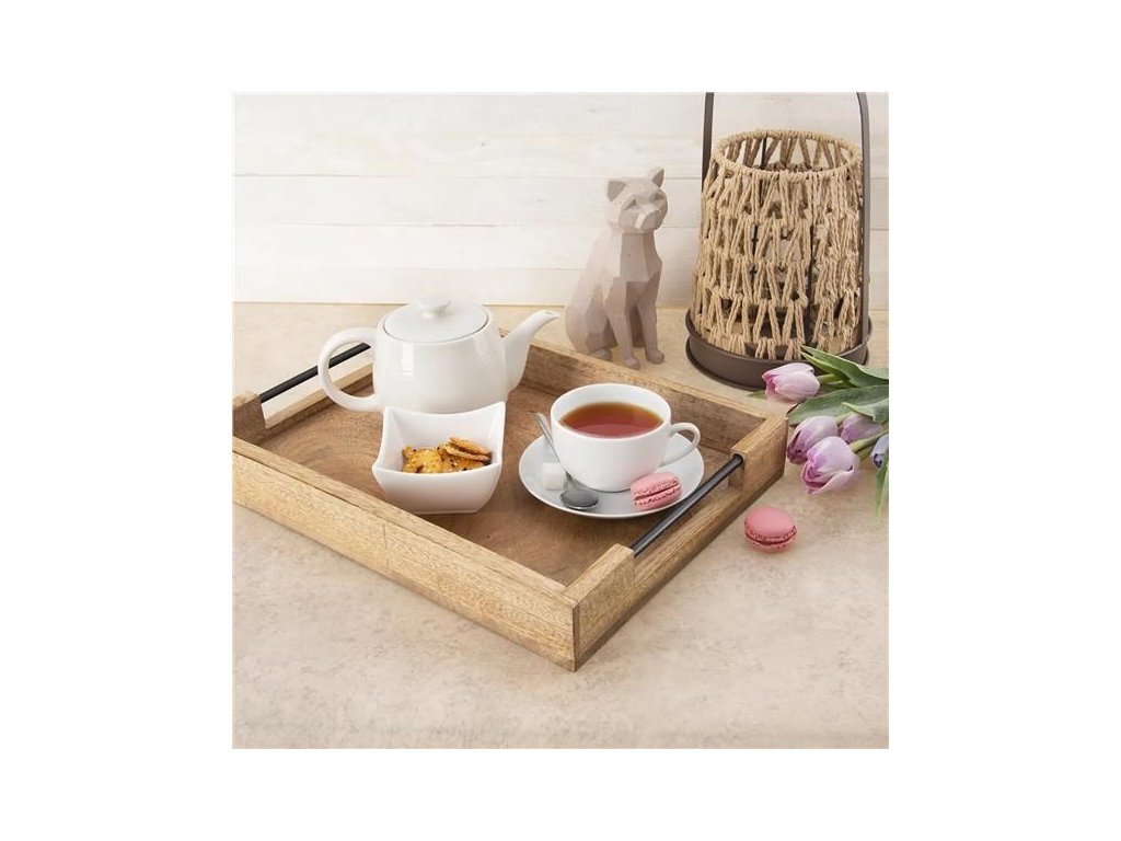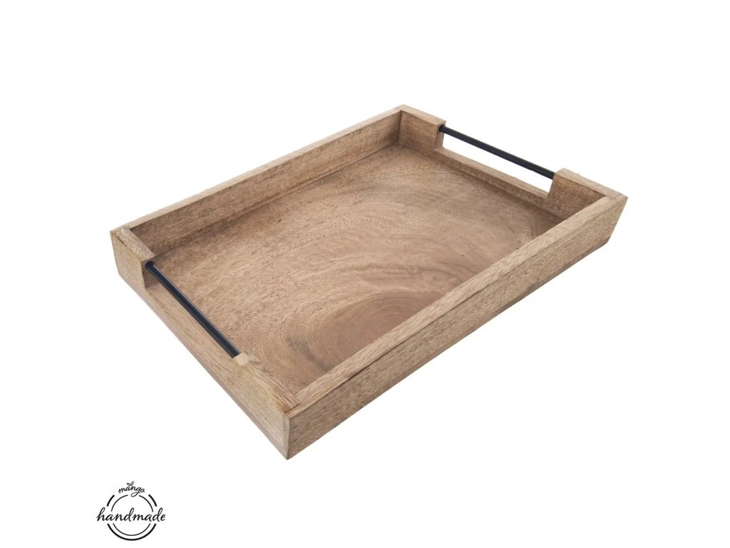 Dobrou kávičku, čaj nebo drobné zákusky snadno přenesete na větším servírovacím tácu z mangového dřeva. Boční kovové části s černým nástřikem z tohoto podnosu dělají designovou záležitost. Může být i zajímavou podložkou na květináče s bylinkami, místem k uložení dochucovadel, vázy s květinami nebo misky s kamínky a svíčkou. Krásný vzor dřeva okouzlí milovníky rustikálního stylu, kov zase domácnosti v tom minimalistickém. Při znečištění jej stačí otřít vlhkým hadříkem a osušit. Jedinečné kousky z mangového dřeva vynikají ručním zpracováním a krásným teplým odstínem. Jedná se skutečně o HAND MADE VÝROBU s místem původu v Indii, kde dřevu z mangovníku vdechnou řemeslníci nový život. K obrábění se používají jednoduché stroje, ruční pily, dláta apod., takže každému kusu je věnována potřebná péče. Věříme, že kolekce MANGO vnese do interiéru příjemnou atmosféru. Vlastnosti produktu Kolekce: MANGO Materiál: dřevo Délka (cm): 40,5 Šířka (cm): 30 Výška (cm): 5,7 Hmotnost (g): 1 288 Tvar: obdélník Ucho: ano Materiál ucha: kov Použití: na servírování Vhodné do myčky: ne Potisk: ne Pro děti: neDoplňkové parametry