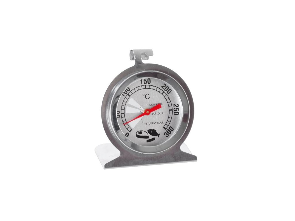 Tento kuchyňský teploměr z nerezové oceli ohlídá správnou teplotu připravovaných pokrmů. Je vybavený analogovým ciferníkem opatřeným stupnicí od 0 °C do +300 °C – teplota je stupňovaná po 10 °C. Výborně poslouží ke kontrole masa, klobásek a dalších pochutin v udírně. Součástí teploměru je nerezový stojánek i praktický háček, ve vybraném prostoru ho tedy stačí kamkoliv položit nebo zavěsit. A jelikož i uzení masa má své specifika a techniky, k usnadnění vaší práce jsou na ciferníku vyznačeny teploty studeného, teplého a horkého kouře. Vlastnosti produktu Materiál: nerezová ocel, sklo Délka (cm): 7 Šířka (cm): 6 Výška (cm): 4 Hmotnost (g): 54 Použití: na maso Vlastnosti: na zavšení Vhodné do trouby: ano Závěsné: ano Umístění: trouba, udírnaDoplňkové parametry