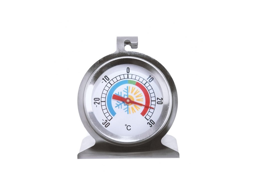 Mějte přehled o teplotě ve vaší lednici. Díky tomuto nerezovému teploměru zabráníte přemražení nebo zkažení jejího obsahu. Je vybavený analogovým ciferníkem, který má stupnici od -30°C do +30 °C – teplota je zde stupňovaná po 2 °C. Teploměr můžete do lednice buď položit nebo zavěsit za nerezový háček, který je jeho součástí. Vlastnosti produktu Materiál: nerezová ocel, sklo Délka (cm): 7 Šířka (cm): 4 Výška (cm): 6 Hmotnost (g): 42 Použití: do lednice Vlastnosti: na zavšení Vhodné do trouby: ne Závěsné: ano Umístění: ledniceDoplňkové parametry