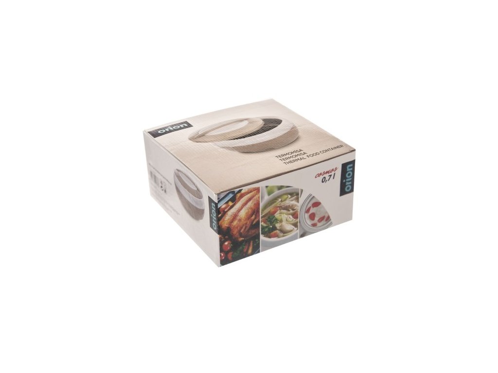 Středně velká barevná termomísa z kolekce COSMOS zaručí, že vložený pokrm zůstane díky pěnové termoizolační vrstvě mezi stěnami delší dobu na konstantní teplotě. Můžete si tak vzít svůj oběd s sebou do práce, na výlety, do auta nebo na dovolenou. Skládá se z plastového obalu a nerezového vnitřku, její objem je 700 ml. Snadné uzavření misky umožňuje otočné plastové termo víčko. Termomísa se hodí na teplé i studené pokrmy, od polévky po zmrzlinu. Jak dlouho zachová teplotu jídel, záleží na teplotním rozdílu mezi vnitřkem nádoby a jejím okolí, tipy na efektivní prodloužení teploty vložených pokrmů najdete na obalu. Vlastnosti produktu Kolekce: TERMO Materiál: plast, nerezová ocel Uzávěr/víko: ano Materiál víka/uzávěru: plast Barvy: mix Výška (cm): 9 Průměr (cm): 17 Objem (l): 0,7 Hmotnost (g): 231 Vhodné do myčky: neDoplňkové parametry