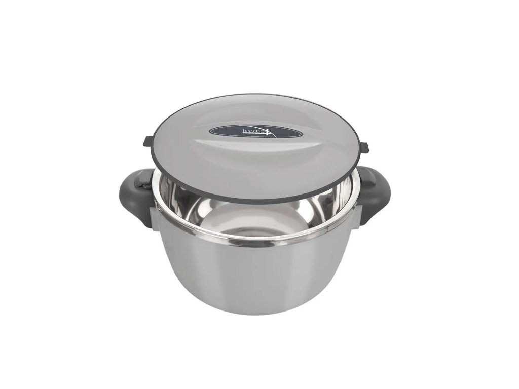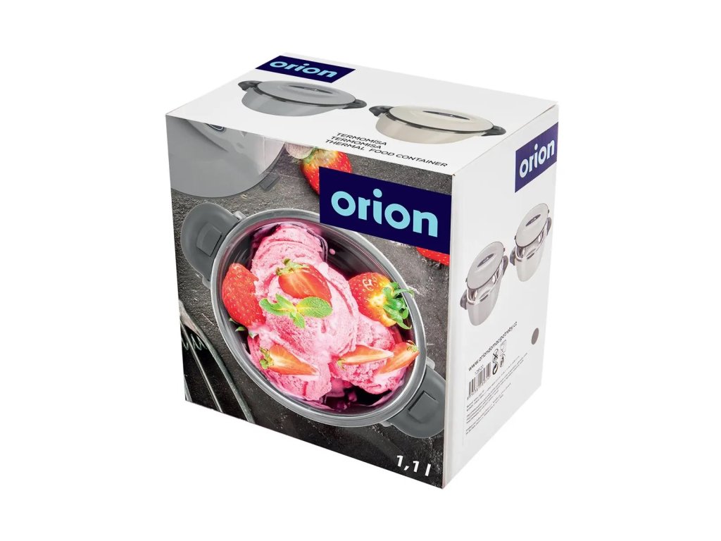 Menší šedá termomísa z kolekce TERMO je šikovnou nádobou s dvojitou izolační stěnou, která zajistí, že vložený pokrm zůstane delší dobu teplý nebo naopak studený. Polévka či hlavní chod zůstanou teplé, připravené k podávání doma, při návštěvě seniorů, v zaměstnání. Přitom je lehká a snadno se přenáší. Lze ji použít i jako mísu s víkem pro uložení marinovaného masa na grilování nebo díky užitnému objemu 0,9 l na zmrzlinu v horkých letních dnech. Otevírá se jednoduše otočením víka, jehož výstupky zapadají do drážky v rukojetích, šířka i s držadly je 22 cm. Je vyrobena z plastu PP, snadno ji po použití umyjete běžným způsobem, v teplé vodě se saponátem. Orion tip: délka udržení teploty v nádobě závisí na okolní teplotě, resp. teplotním rozdílu vnější teploty a teploty uvnitř nádoby. Před vložením studeného pokrmu, např. zmrzliny, vložte nádobu cca na hodinu do ledničky, prodloužíte tím chladící efekt. Při vkládání teplého jídla nalijte dovnitř horkou vodu, kterou zhruba po 1-2 minutách vylijte. Vlastnosti produktu Kolekce: TERMO Materiál: plast, nerezová ocel Uzávěr/víko: ano Materiál víka/uzávěru: plast PP Barvy: šedá Výška (cm): 11 Průměr (cm): 16 Objem (l): 1,1 Hmotnost (g): 331 Vhodné do myčky: ne Vhodné do mikrovlnky: neDoplňkové parametry