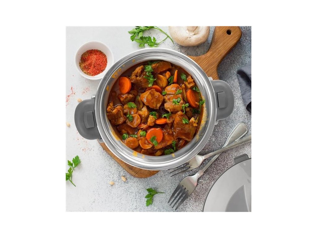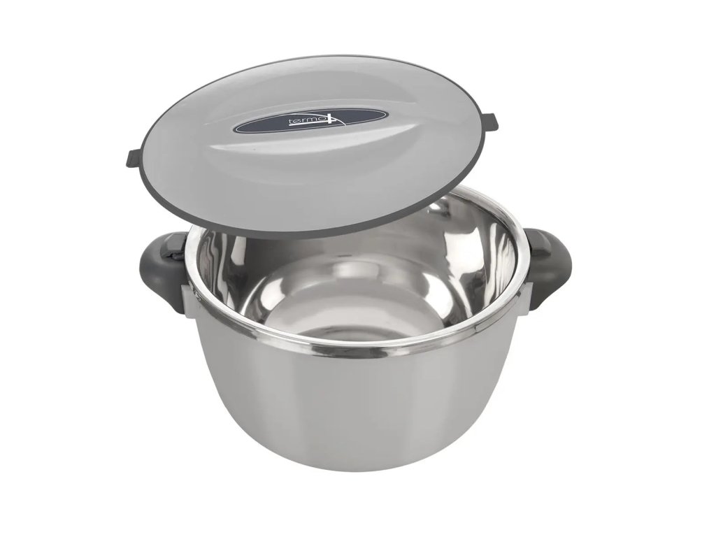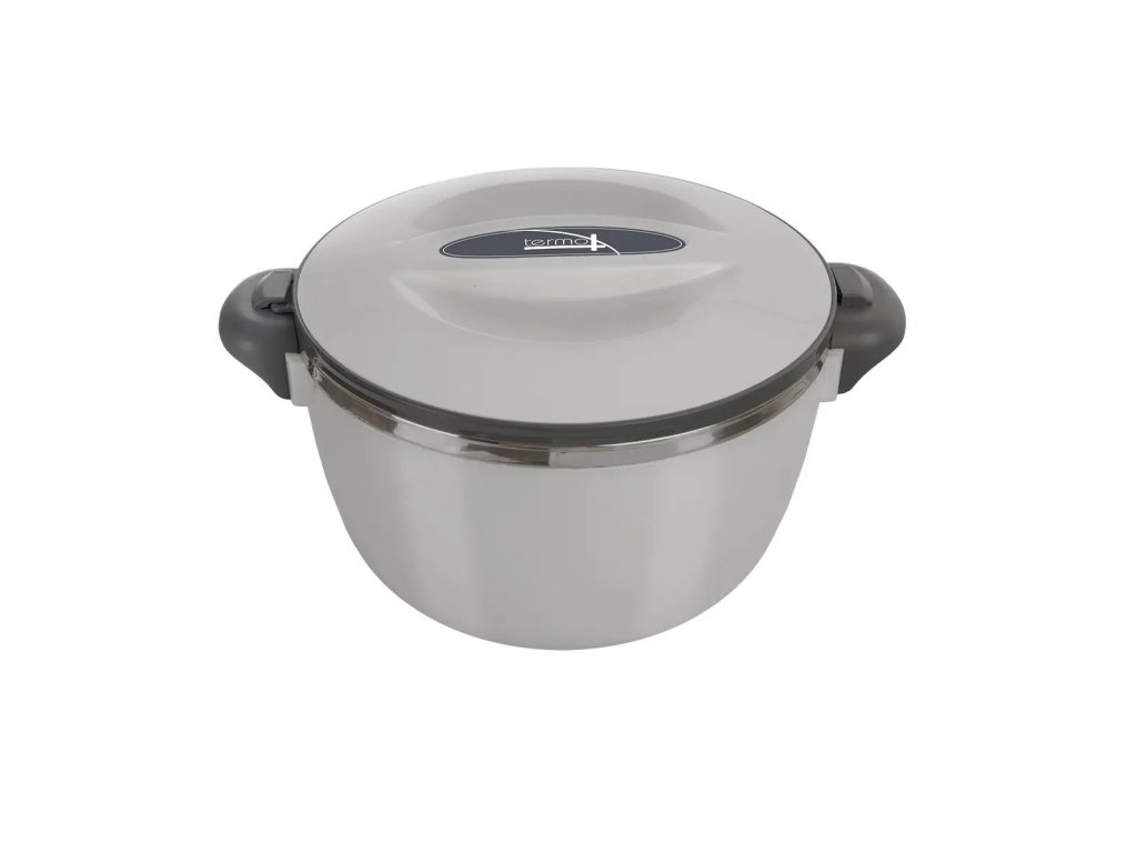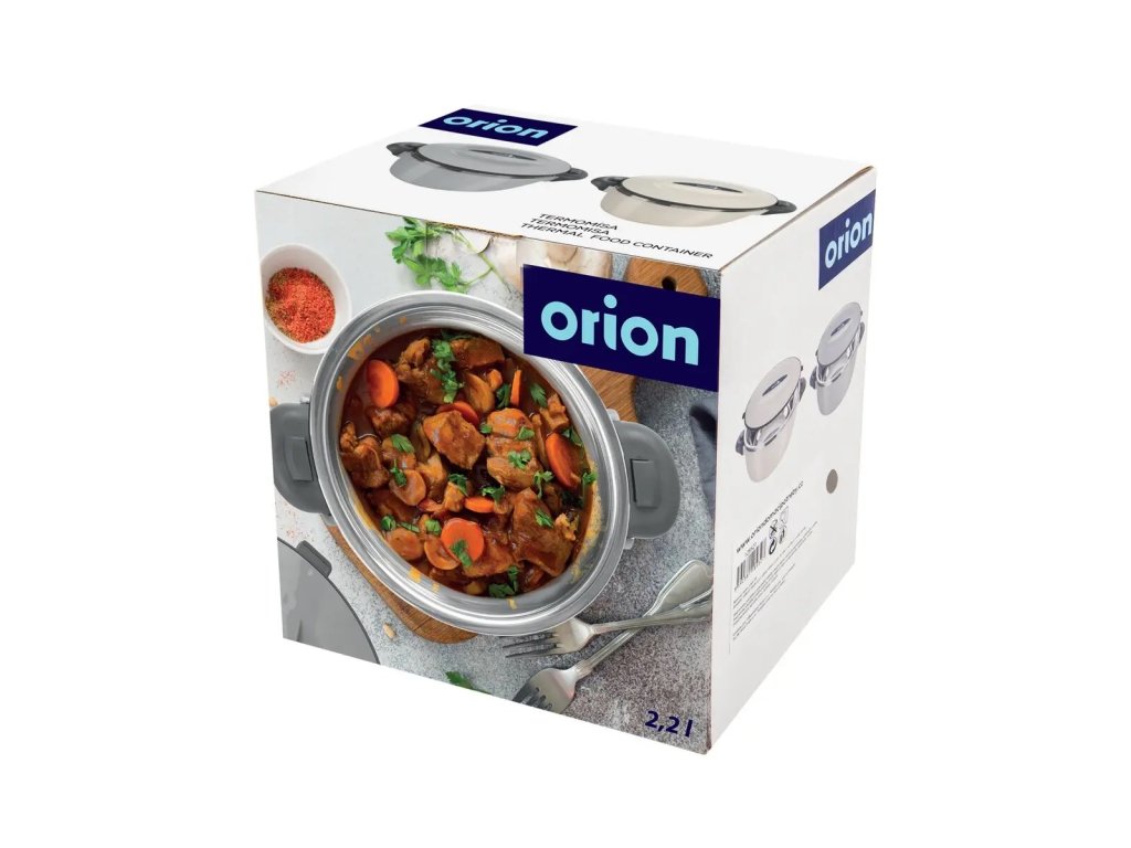 Střední šedá termomísa z kolekce TERMO je šikovnou nádobou s dvojitou izolační stěnou. Ta zajistí, že vložený pokrm zůstane delší dobu teplý nebo naopak studený. Polévka či hlavní chod zůstanou teplé, připravené k podávání doma, při návštěvě seniorů, v zaměstnání. Přitom je lehká a snadno se přenáší. Lze ji díky užitnému objemu 2 l použít i jako mísu s víkem pro uložení marinovaného masa na grilování nebo na zmrzlinu v horkých letních dnech. Otevírá se jednoduše otočením víka, jehož výstupky zapadají do drážky v rukojetích, šířka i s držadly je 26 cm. Je vyrobena z plastu PP, snadno ji po použití umyjete běžným způsobem, v teplé vodě se saponátem. Orion tip: délka udržení teploty v nádobě závisí na okolní teplotě, resp. teplotním rozdílu vnější teploty a teploty uvnitř nádoby. Před vložením studeného pokrmu, např. zmrzliny, vložte nádobu cca na hodinu do ledničky, prodloužíte tím chladící efekt. Při vkládání teplého jídla nalijte dovnitř horkou vodu, kterou zhruba po 1-2 minutách vylijte. Vlastnosti produktu Kolekce: TERMO Materiál: plast, nerezová ocel Uzávěr/víko: ano Materiál víka/uzávěru: plast PP Barvy: šedá Výška (cm): 14 Průměr (cm): 20 Objem (l): 2,2 Hmotnost (g): 484 Vhodné do myčky: ne Vhodné do mikrovlnky: neDoplňkové parametry