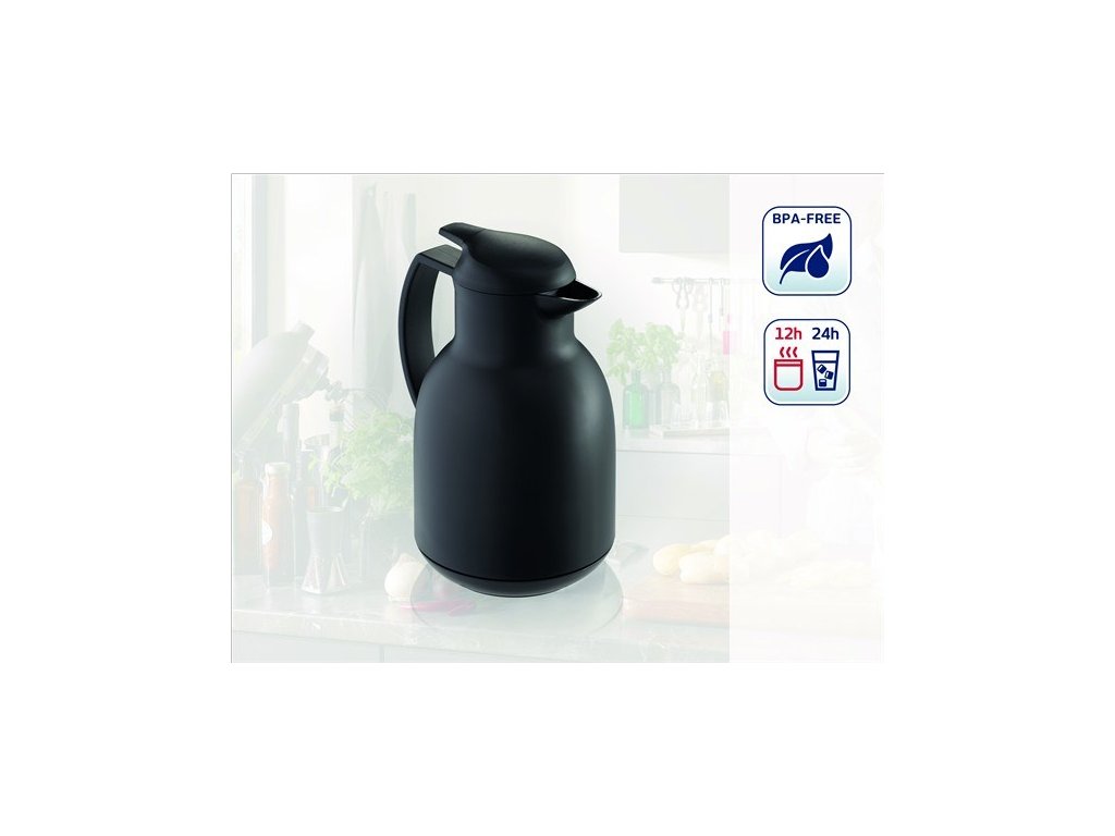 Černá termoska BOLERO s objemem 1 l značky Leifheit. - elegantní termoska s atraktivním designem - aroma tlačítko pro plné ovládání jednou rukou - termoska zaručuje udržení teploty a aroma nápoje - vhodná do domácnosti, na cesty i venkovní použití - speciální tvar nálevky s funkcí proti ukápnutí - objem: 1 l - materiál: plast, sklo - záruka 3 roky - rozměry: 25 x 16 x 14,5 cmDoplňkové parametry