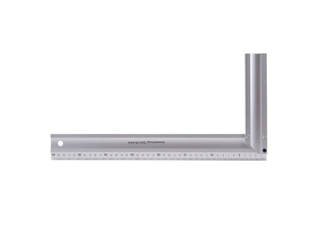 Hliníkový úhelník, měřící rameno se stupnicí v mm, zesílený profil, kvalitní zpracování.