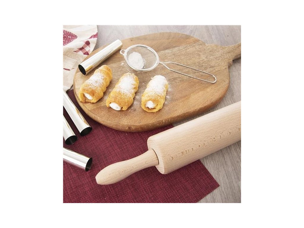 Kuchyňský váleček s rozvalovací plochou délky 20,5 cm je nepochybně jednou z nepostradatelných věcí v kuchyni, své využití najde při rozvalování těsta na nudle, těsta na sladké i slané záviny, koláče, pizzu apod. Jeho povrch není ošetřen žádným nátěrem, proto je zcela zdravotně nezávadný. Má zabroušené hrany a příjemně se držící rukojeti, které snesou i větší tlak. Upozornění: Dřevo je nasákavý materiál, ale rozhodně mu neuškodí umývání v teplé vodě se saponátem bez dlouhého namáčení, pak jej stačí opláchnout a nechat přirozeně uschnout. Vlastnosti produktu Materiál: dřevo Délka (cm): 40 Průměr (cm): 6 Hmotnost (g): 476 Vhodné do myčky: ne Období: celoročněDoplňkové parametry