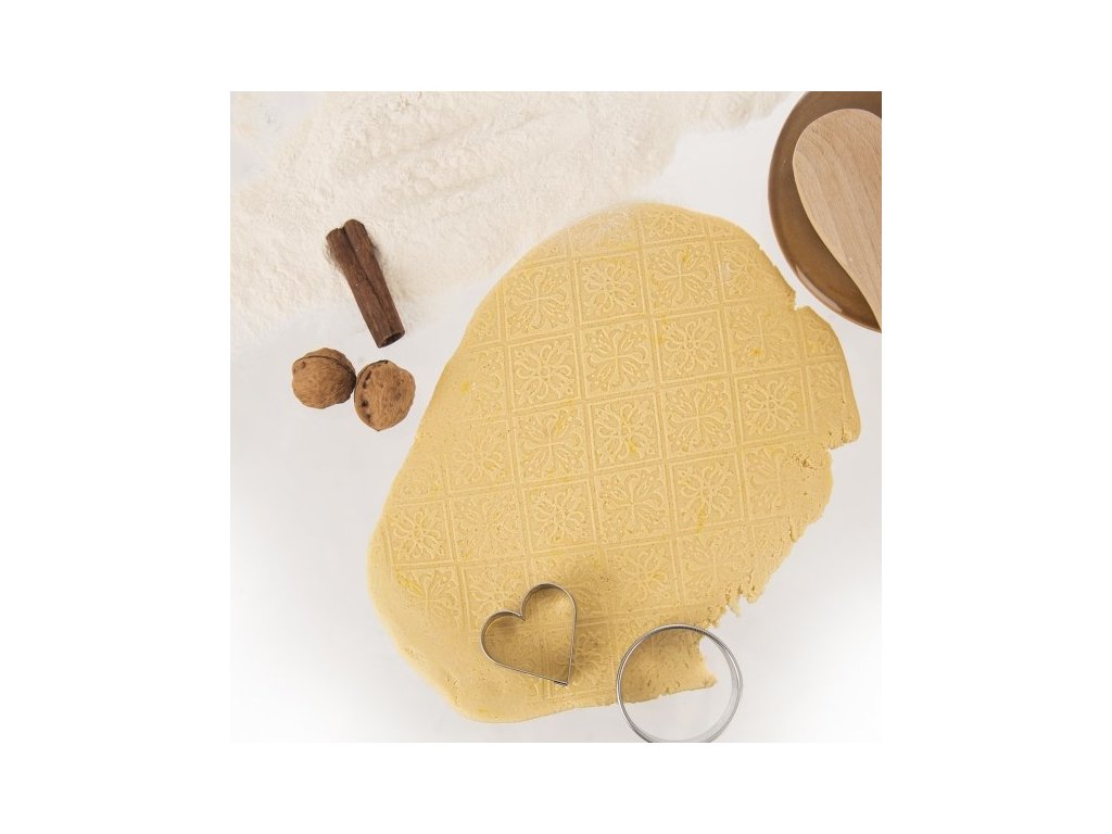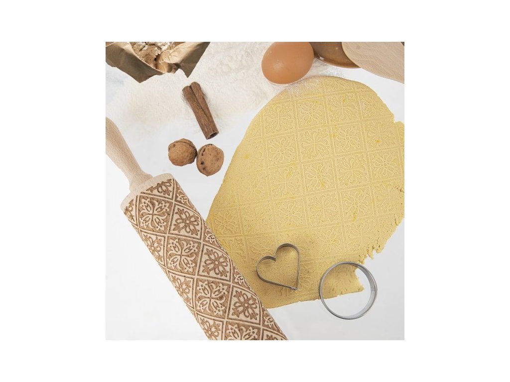 Dřevěný bukový váleček vtiskne vašim sušenkám i cukroví originální plastický vzor zvonků v geometrických polích. Upečte si netradiční a rychle hotové sladké máslové sušenky, sýrové krekry nebo perníčky, které nemusíte zdobit polevou. Zapojte i své malé ratolesti a pochlubte se před svými hosty originálními a chutnými výtvory nebo úžasným marcipánovým dortem. Tip: Před použitím jej lehce potřete stolním olejem, váleček se tak naimpregnuje a těsto se nebude lepit. Po použití mu rozhodně neuškodí umývání v teplé vodě se saponátem bez dlouhého namáčení, pak jej stačí opláchnout a nechat přirozeně uschnout. Vlastnosti produktu Materiál: dřevo Délka (cm): 38 Průměr (cm): 6 Hmotnost (g): 408 Vlastnosti: se vzorkem Vhodné do myčky: ne Období: celoročněDoplňkové parametry