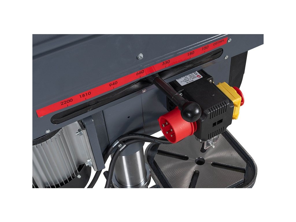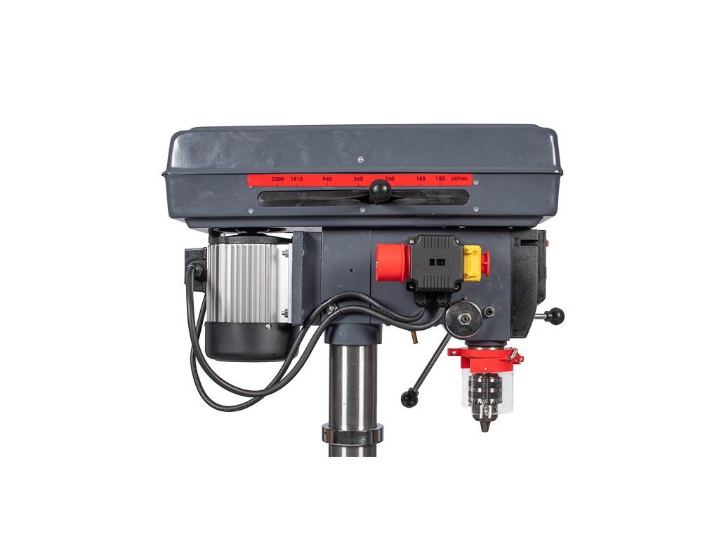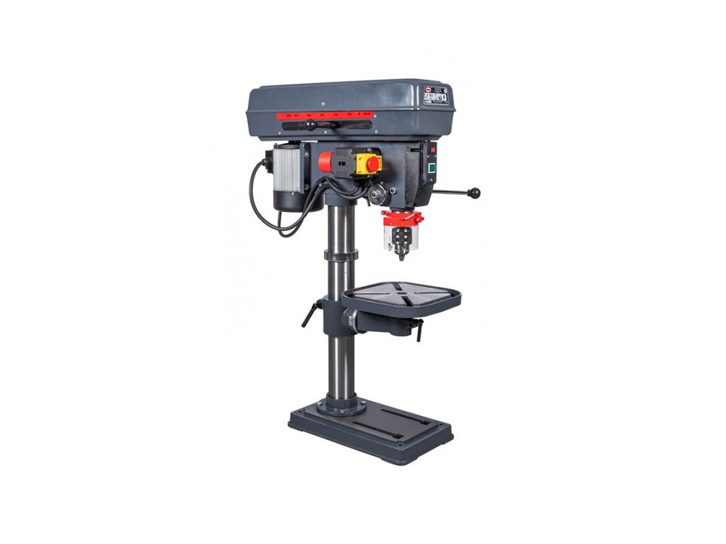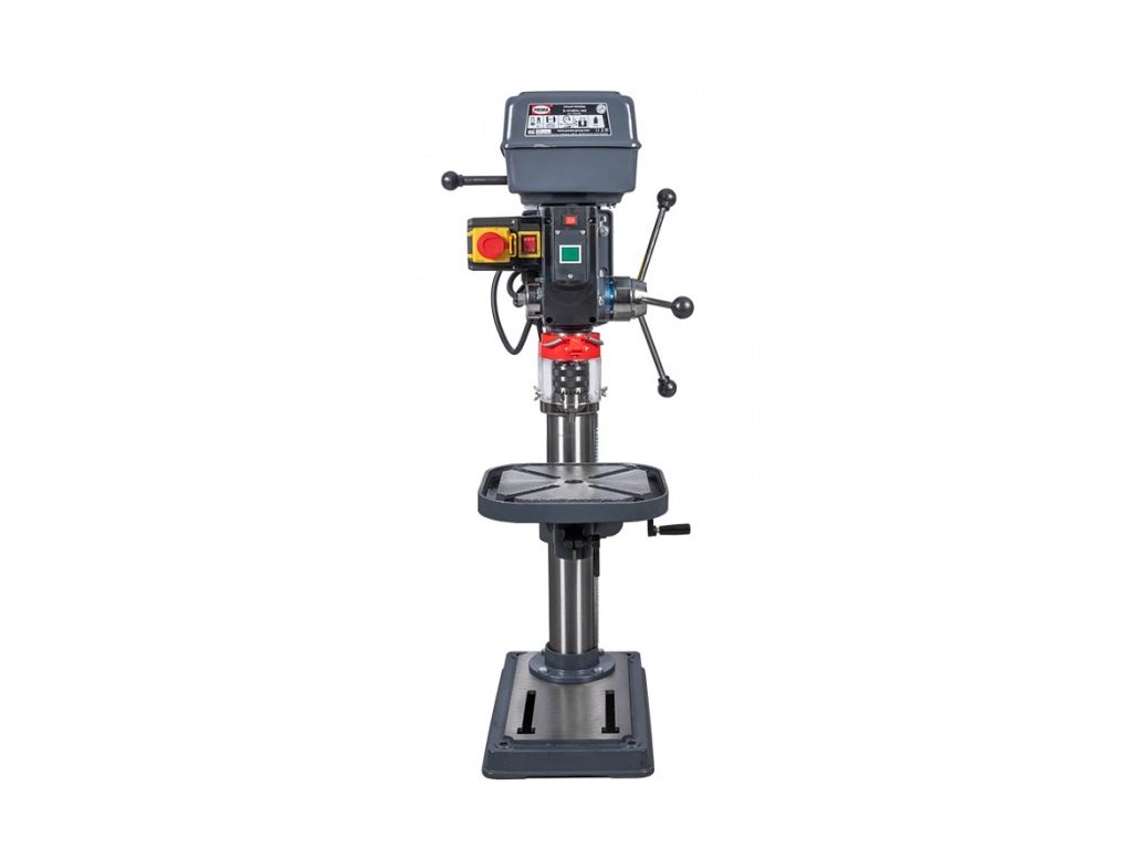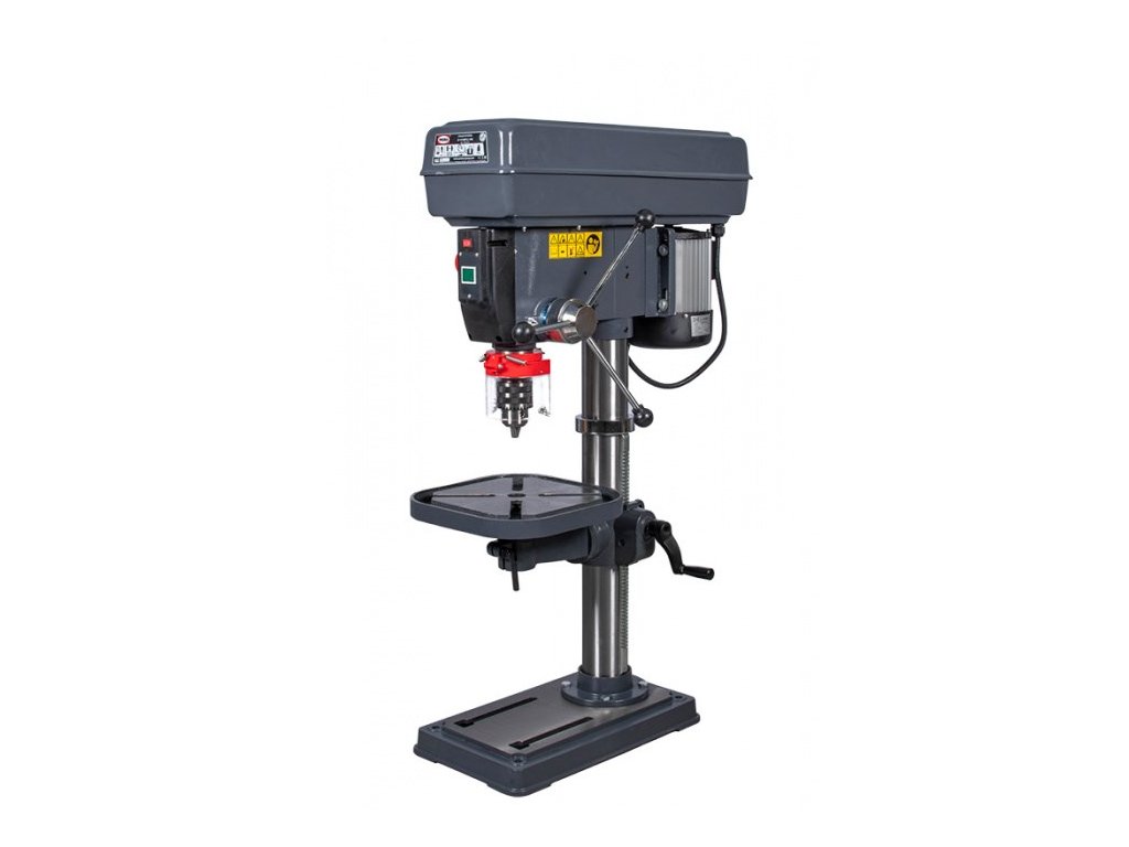 Sloupové vrtačky PROMA jsou konstruovány pro vrtání a zahlubování. Vřetena je uloženo v kuličkových ložiscích a osazena kuželem Mk II, do kterého je možné vložit vrtací sklíčidlo nebo přímo nástroj. Pracovní stůl lze natáčet až o 360° pomocí otočného čepu a naklápět do úhlu + / - 45° od základní roviny, což umožňuje vrtání otvorů pod různými úhly. Změna otáček je realizována pomocí variátoru Laserový zaměřovací paprsek Možnost volby otáčení Možnost otáčení stolku Naklápění stolku +/- 45 st. Radiální ložiska Vrtačka je konstruována pro vrtání, zahlubování a vystružování Hodí se pro zámečnické dílny, opravárenské podniky, truhlárny, údržbářské dílny, ale i pro kutily Pomocí klínových řemenů lze zvolit až 12 rychlostí otáčení vřetene Technická data: Příkon 650 W Max. vrtaný průměr 19 mm Napětí 400 V Sklíčidlo 1 - 16 mm Kužel vřetene II Mk Vyložení vřetene (X) 180 mm Posuv vřetene 75 mm Max. vzdál. vřet. od stolu (h) 300 mm Max. vzdál. vřet. od zákl. (H) 490 mm Rozměr stolu (a x b) 290 x 290 mm Rozměr základny (A x B) 450 x 270 mm Průměr sloupu (D) 80 mm Rozsah otáček 150 - 2 150 min.?1 \"T\" drážka stolu 16 Celková výška (V) 1 040 mm Váhy a míry: Celková váha včetně obalu 68.0 kg Čistá váha 63.0 kg Šířka/Výška/Hloubka 86 / 57 / 29 cmDoplňkové parametry