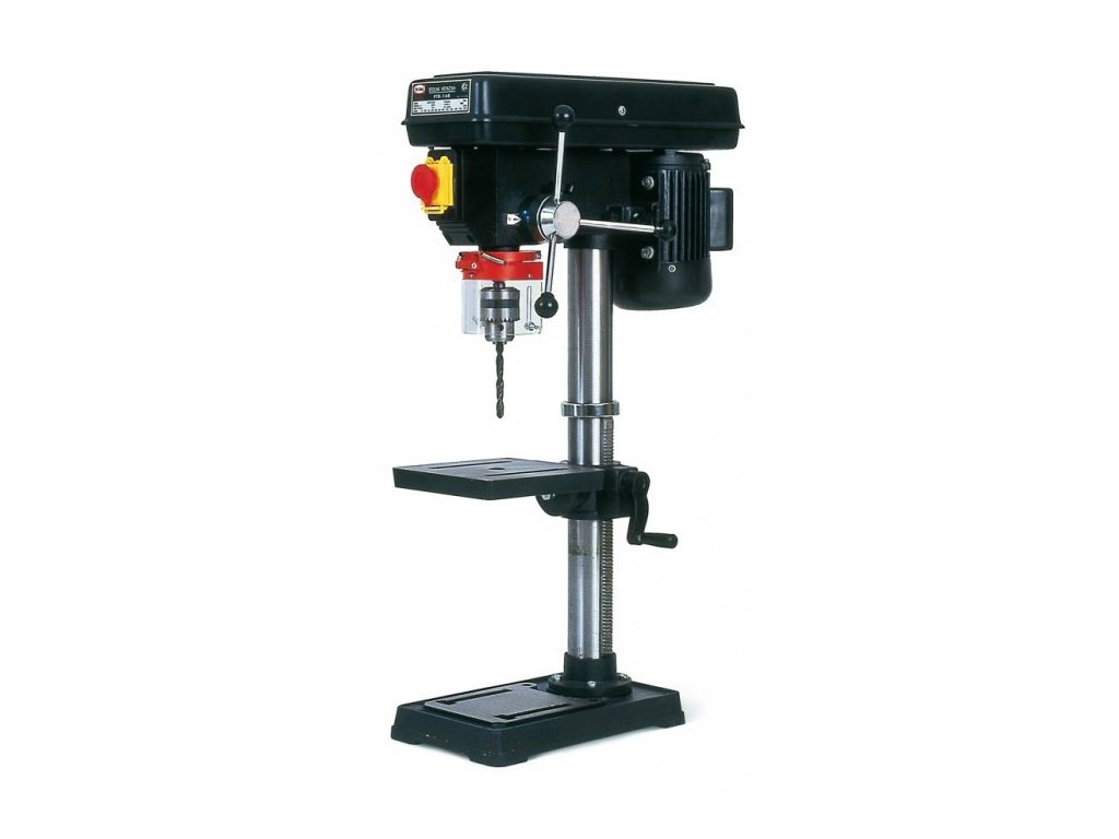 PTB-16B/230 - Stolní vrtačka Sloupové vrtačky PROMA jsou konstruovány pro vrtání a zahlubování. Vřetena je uloženo v kuličkových ložiscích a osazena kuželem Mk II, do kterého je možné vložit vrtací sklíčidlo nebo přímo nástroj. Pracovní stůl lze natáčet až o 360° pomocí otočného čepu a naklápět do úhlu + / - 45° od základní roviny, což umožňuje vrtání otvorů pod různými úhly. Radiální ložiska Naklápění stolku +/- 45° Vřeteno s kuličkovými ložisky Výklopný plastový kryt vřetene Nastavení hloubky vrtání s dorazem Tiché a výkonné hliníkové elektromotory Masivní, silně dimenzovaná základní deska s drážkami, na spodní straně žebrovaná Technická data: Příkon 450 W Max. vrtaný průměr 16 mm Napětí 230 V Sklíčidlo 3 - 16 mm Kužel vřetene Mk II Vyložení vřetene (X) 127 mm Posuv vřetene 60 mm Max. vzdál. vřet. od stolu (h) 420 mm Max. vzdál. vřet. od zákl. (H) 540 mm Rozměr stolu (a x b) 198 x 198 mm Rozměr základny (A x B) 340 x 210 mm Průměr sloupu (D) 60 mm Počet rychlostí 12 Rozsah otáček 210 - 2 580 min.?1 \"T\" drážka stolu 14 mm Celková výška (V) 840 mm Balení - rozměr kartonu (d x š x v) 760 x 490 x 260 mm Váhy a míry: Celková váha včetně obalu 37.0 kg Čistá váha 34.0 kg Šířka/Výška/Hloubka 48 / 29 / 77 cmDoplňkové parametry