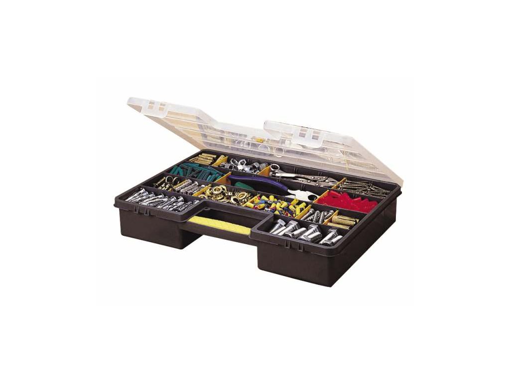 Zavřené víko uzamyká přihrádky a chrání jejich obsah před vysypáním.