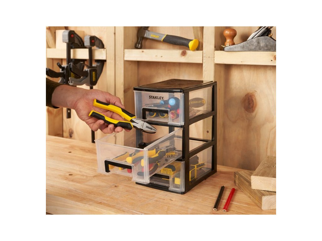 Průhledné zásuvky, poskytují jasnou viditelnost obsahu. Vyjímatelné zásuvky se zarážkami pro snadný přístup k obsahu. Lehká a kompaktní polypropylenová konstrukce, ideální pro použití v dílnách a garážích. Rozměry: Délka:24 cm Výška:30 cm Šířka: 17 cm Celková hmotnost: 1,3 kgDoplňkové parametry