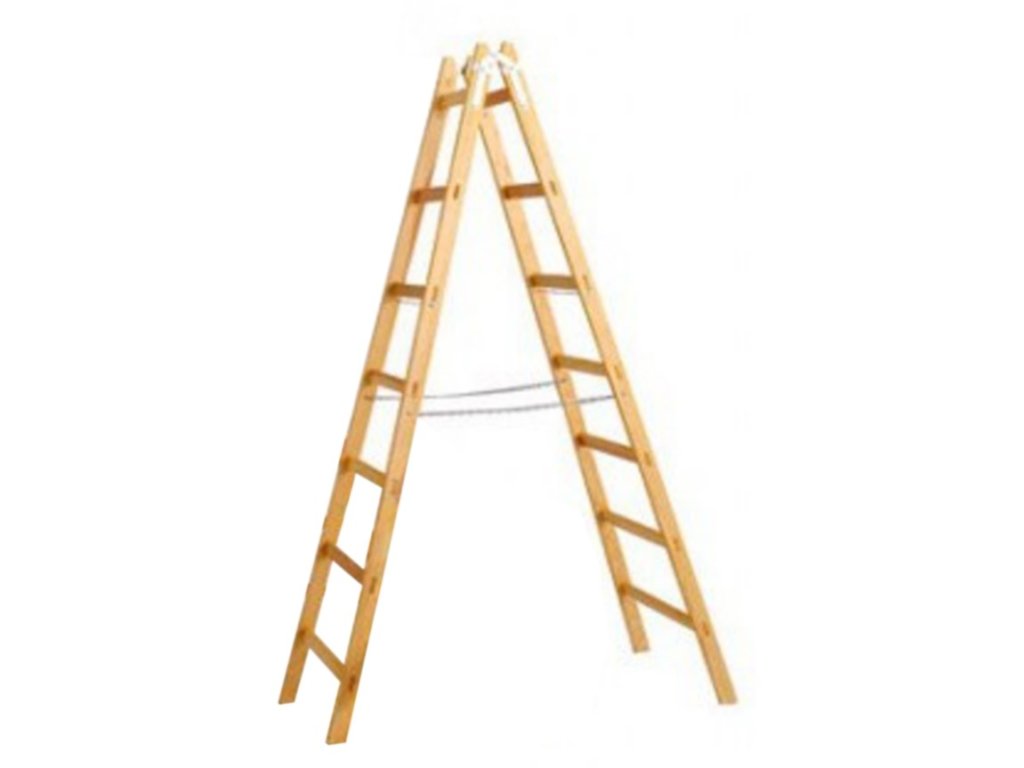 Dřevěný žebřík dvojitý po sedmi příčkách. Vhodný pro použití v domácnosti, na zahradě nebo pro řemesla všeho druhu. Opatřen bezpečnostními řetízky omezující rozevření. a stahovacími tyčemi pro zpevnění žebříku. materiál: dřevo (třetí příčka je vždy z tvrdého dřeva) kování a řetízky: pozink počet dílů: 2 rozměry složeného žebříku v x š x h: 222 x 63 x 12 cm profil příčky: 60x25 mm profil bočnice: 60x25 mm počet příček: 2 x 7 vzdálenost příček: 30 cm nosnost: 150 kg hmotnost: 10,5 kgDoplňkové parametry