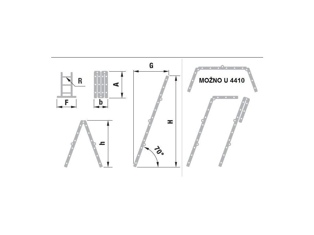 Žebřík čtyřdílný kloubový Vysoce sofistikovaná řada FORTE v dokonalém žluto-černém designu splňuje ta nejnáročnější kritéria, její konstrukce byla vyvinuta ve spolupráci s profesionálními zákazníky tak aby zaručovala vysokou odolnost a spolehlivost při zachování co možná nejmenší váhy výrobků. Také řada FORTE je nabízena v široké nabídce typů od jednoduchých až po trojdílné univerzální, v závislosti na typu Vás se s jejich pomocí dostanete až do výšky 12,32 metrů. Řady štaflí FORTE prošly taktéž náročnými testy německé zkušebny TÜV tak, aby vyhovovaly použití v souladu s Evropskou normou EN 131 pro povolené zatížení 150 kg. SPECIFIKACE počet příček: 4 x 4 délka:1,23 m maximální délka 4,63 m. šířka: 350 mm váha: 14,5 kgDoplňkové parametry