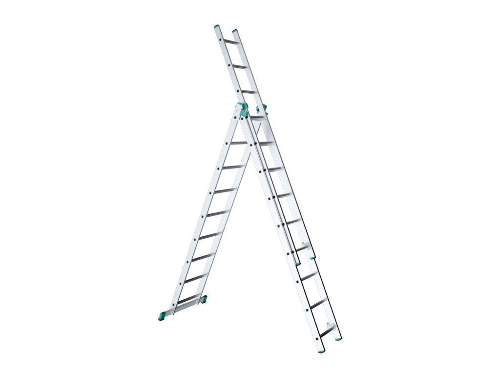 Trojdílný univerzální žebřík Eurostyl Počet příček: 3 x 9 Délka: 2,58 m Celková délka: 5,69 Šířka:454 mm Šířka druhé části: 397 mm Šířka třetí části: 340 mm Hmotnost: 13,70 kgDoplňkové parametry