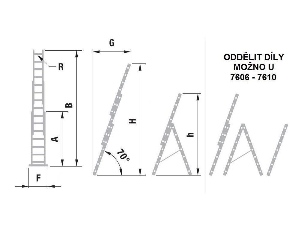 Žebřík trojdílný univerzální 7609 AL 569cm/HOBBY/3x9 příček